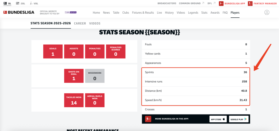 而这些数据,通常是专业数据分析供应商的核心数据,并不会免费提供给大众,俱乐部自建的数据仓也会自处理,作为商业核心高度保密。在市面上,目前只有德甲官方,会出局免费的简易无球数据提供给大众:
