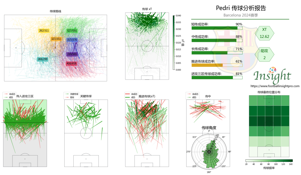 所以,结果数据其实往往承载着大量的误差,让人很难去评价一个球员或者一支球队的全貌,也很难去总结出一个球员/球队的特点。所以,现在普遍足球数据分析师,以及教练,往往采用的是另外一种数据:我们将其称之为「过程数据」。即比赛过程中根据球员的行为展示出来的,比方说尝试过人,过人成功,尝试传球,传球成功,向前传球比例,侧向传球比例,短传比例,中远距离传球比例及准确度等等。